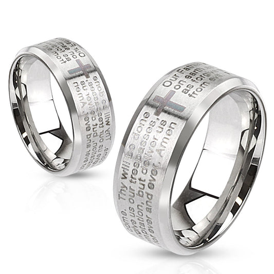 Misty Blue Micah - Lord's Prayer Beveled Edge Stainless Steel Ring