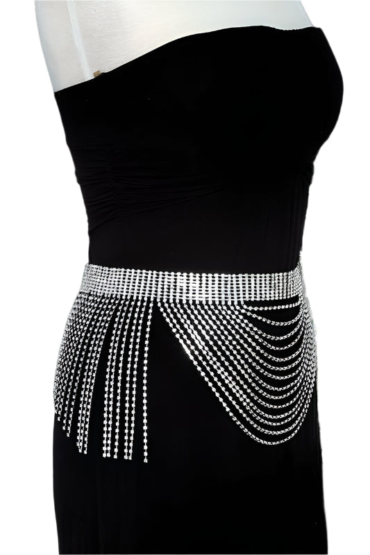 Misty Blue Royal - Rhinestone Dangling Fringe Belt